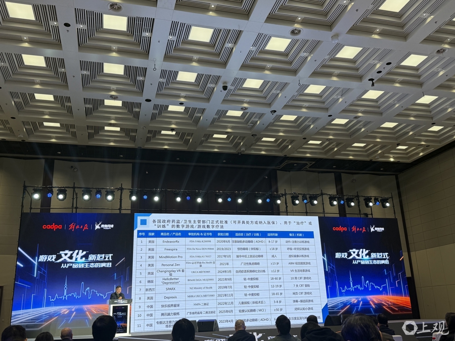 喻国明分享一批已被各国相关主管部门正式批准可开具处方或纳入医保的数字游戏产品。施晨露摄